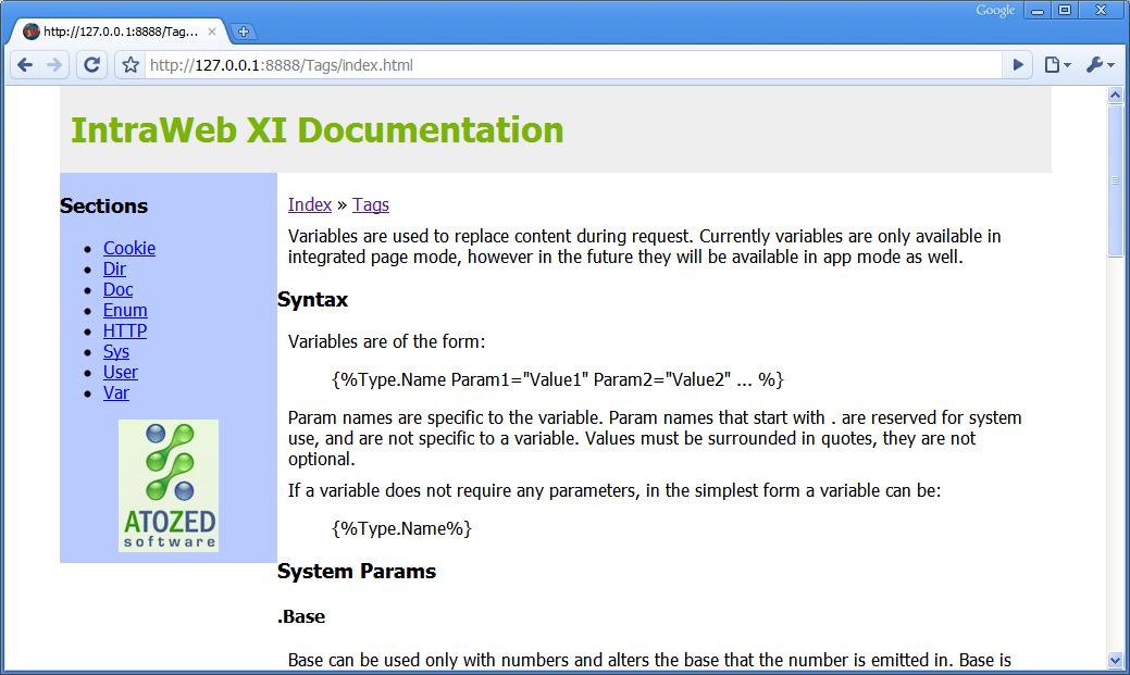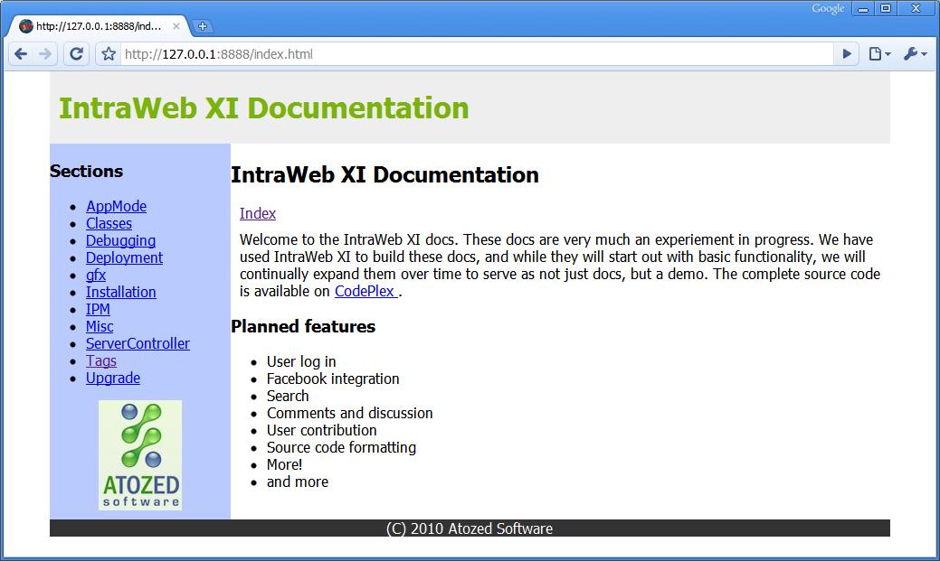 XI (doc) – IWDocs demo By KudzuJanuary 2, 2010January 10, 2018IntraWeb Archive XI (doc) – IWDocs demo Check out some screenshots of the IWDocs demo application built with IntraWeb XI. All the website structure is built with the new IW XI features (IPM, Enum tags, System tags, templates, config files and much more).